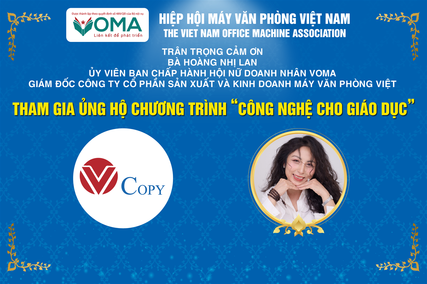 Hiệp hội Máy Văn phòng Việt Nam xin gửi lời cảm ơn chân thành đến Bà Hoàng Nhị Lan đã tham gia và đồng hành cùng chương trình "CÔNG NGHỆ CHO GIÁO DỤC" — một hoạt động ý nghĩa nhằm thúc đẩy ứng dụng công nghệ trong lĩnh vực giáo dục.