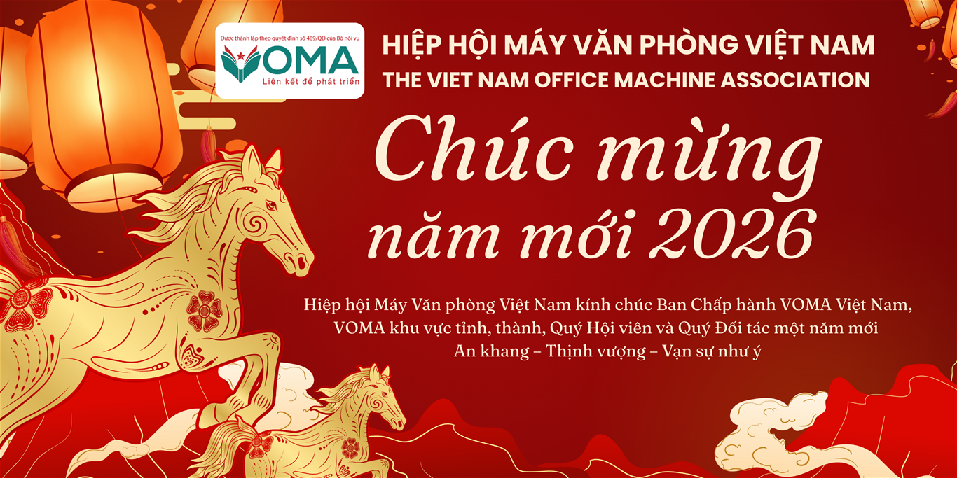 Trong thời khắc thiêng liêng chuyển giao giữa năm cũ và năm mới, Hiệp hội Máy Văn phòng Việt Nam (VOMA) xin gửi lời chúc mừng nồng nhiệt và trân trọng nhất đến Ban Chấp hành VOMA Việt Nam, Ban Chấp hành VOMA các tỉnh, thành, Quý Hội viên cùng Quý đối tác thân thiết đã luôn đồng hành, gắn bó và đóng góp cho sự phát triển của ngành máy văn phòng trong suốt thời gian qua.