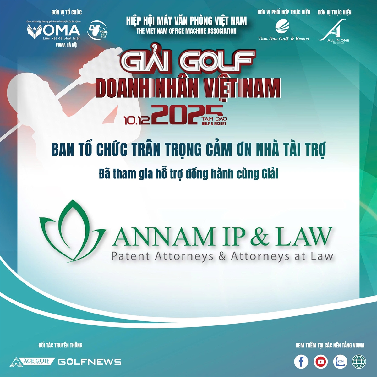 🏌️♂️ Ban tổ chức Giải Golf Doanh nhân Việt Nam 2025 trân trọng gửi lời cảm ơn sâu sắc đến Đại diện Sở hữu Trí tuệ Ân Nam (ANNAM IP & LAW) – Nhà tài trợ đã đồng hành và hỗ trợ cho sự kiện năm nay.