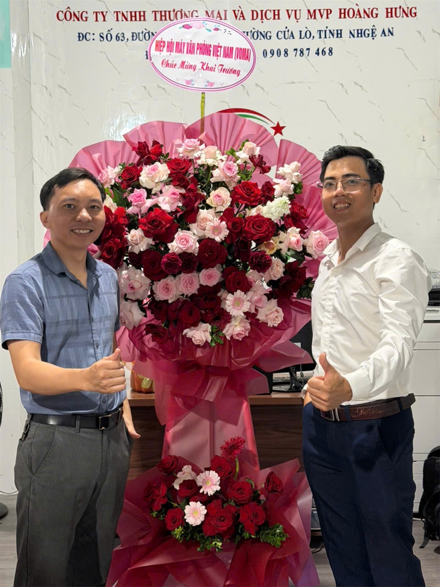 🎉 Hiệp hội Máy Văn phòng Việt Nam (VOMA) trân trọng gửi lời chúc mừng đến Ông Nguyễn Thế Tùng – Ủy viên Ban Chấp hành VOMA khu vực Nghệ An, Giám đốc Công ty TNHH Thương mại và Dịch vụ MVP Hoàng Hưng – nhân dịp khai trương cơ sở mới, một dấu mốc quan trọng trong hành trình phát triển của doanh nghiệp.