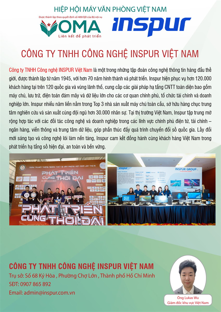 CÔNG TY TNHH CÔNG NGHỆ INSPUR VIỆT NAM trở thành thành viên của Hiệp hội máy văn phòng Việt Nam (VOMA)