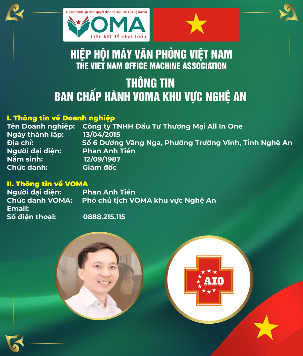 HIỆP HỘI MÁY VĂN PHÒNG VIỆT NAM (VOMA) – GIỚI THIỆU LÃNH ĐẠO KHU VỰC NGHỆ AN